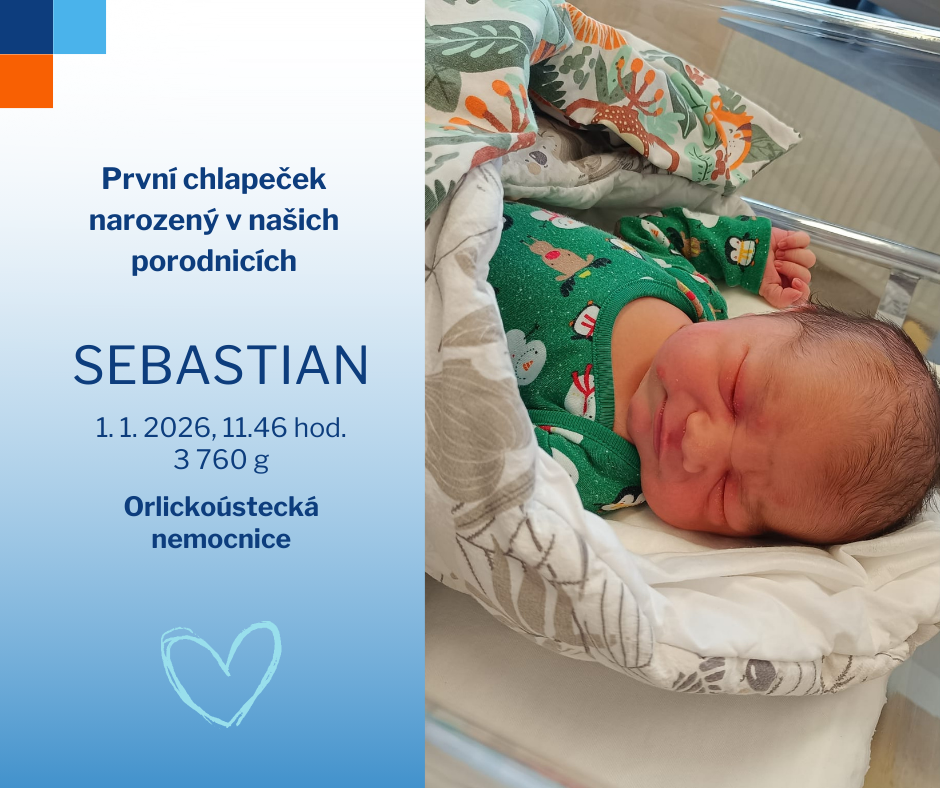 Ještě tentýž den přivítali v Ústí nad Orlicí také prvního letošního chlapečka v kraji. Sebastian Pecháček se narodil v 11:46 a vážil 3 760 gramů.