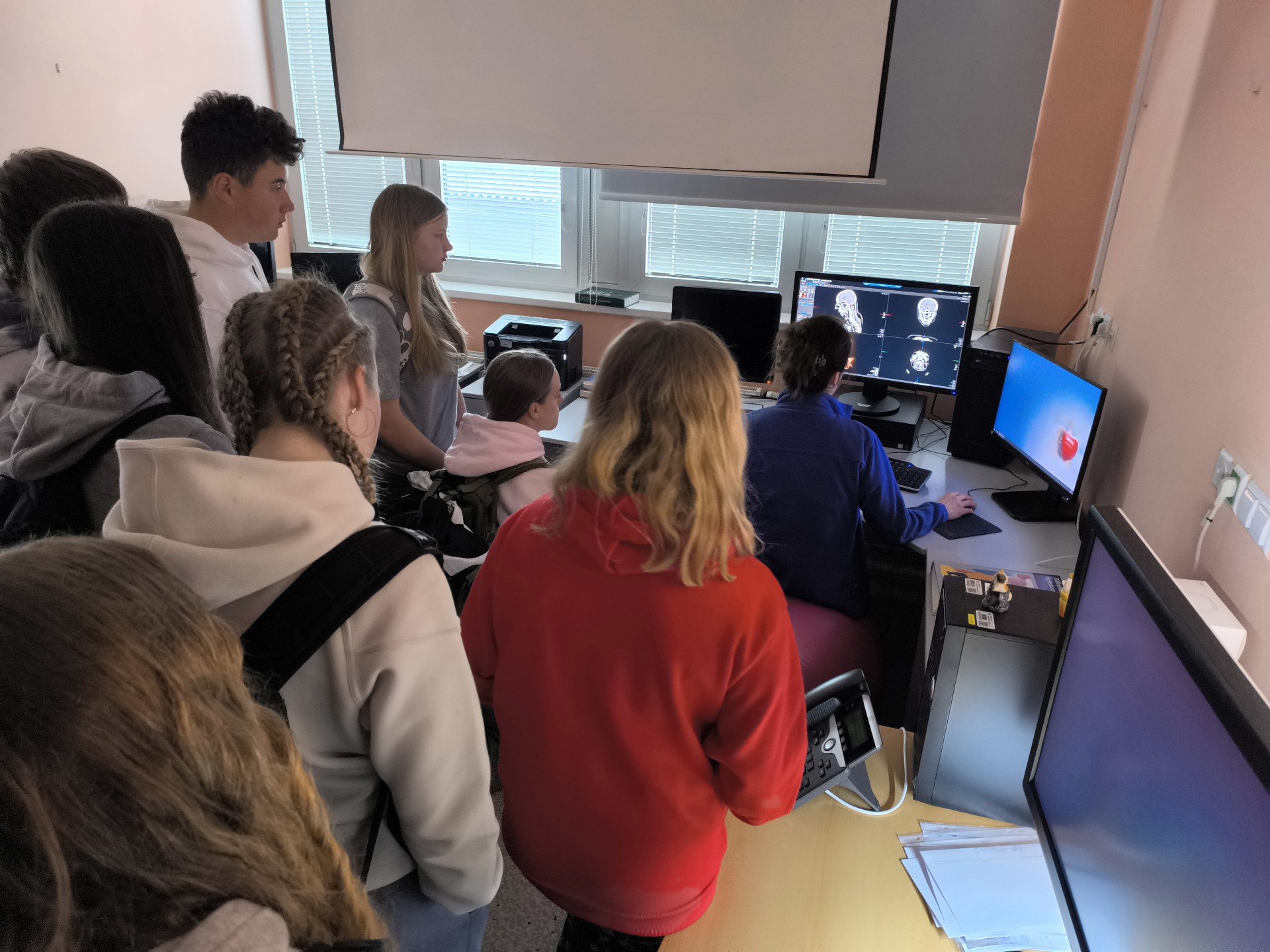 Žáci 9. třídy si nejdříve prošli celou cestu pacienta, kterého přiveze zdravotnická záchranná služba do nemocnice s podezřením na cévní mozkovou příhodu. Jejich trasa začínala od vstupních dveří monobloku na radiodiagnostické oddělení, konkrétně do CT vyšetřovny. Právě výpočetní tomografie (CT) totiž dovede s velmi vysokou mírou jistoty prokázat či vyvrátit přítomnost krvácení do mozku. V doprovodu staniční sestry iktové jednotky Stanislavy Vavruškové, která žáky provázela celým programem, žáci pokračovali na neurologickou JIP, kde se dozvěděli, jak probíhá péče o pacienty s iktem – tedy po cévní mozkové příhodě. Právě litomyšlská neurologie je totiž jedním ze 45 iktových center v ČR, kam jsou soustřeďováni pacienti po cévní mozkové příhodě. V loňském roce zde podali těmto pacientům celkem 108 intravenózních trombolýz. „Čím dříve se léčba zahájí, tím vyšší je její úspěšnost. Ať už z hlediska přežití pacienta, nebo následků mozkové příhody,“ vysvětlila dětem staniční sestra neurologické JIP Stanislava Vavrušková.