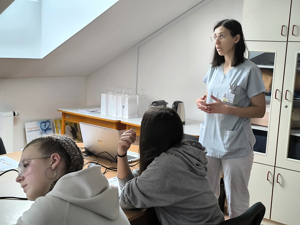 Právě o nich v závěru exkurze povídala žákům lékařka z neurologického oddělení Inna Paťchová: „Nejjednodušší a nejvíce používané schéma pro vyšetření mrtvice je tak zvaný FAST: Face (obličej), Arm (ruka), Speech (mluva) a Time (čas). Když má člověk pokleslý koutek, má poruchu hybnosti poloviny těla nebo jenom jedné končetiny, začíná špatně mluvit, nedokáže se vyjádřit, má setřelou řeč nebo má náhle vzniklé motání hlavy s poruchou rovnováhy, případně padá, má dvojité vidění, rozostření zraku, tak to znamená, že se v mozku něco děje a je čas volat záchranku. I když tyto příznaky trvají pouze několik minut a pak kompletně odezní, stejně je nutné zavolat záchranku, protože se může jednat o tranzitorní ischemickou ataku – přechodnou krátkodobou mrtvici, která může být předzvěstí velké mozkové příhody s trvalými následky.“